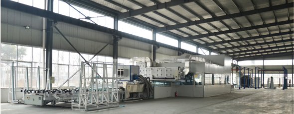 華業(yè)玻璃購(gòu)買的彩釉玻璃生產(chǎn)線安裝到位,投入生產(chǎn)。