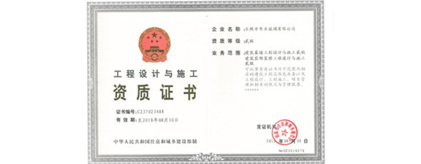 華業(yè)玻璃獲得“建筑幕墻工程設(shè)計(jì)與施工一體化”貳級(jí)資質(zhì)、“建筑裝飾裝修工程設(shè)計(jì)與施工一體化”貳級(jí)資質(zhì)、“金屬門窗工程專業(yè)承包叁級(jí)資質(zhì)”。
