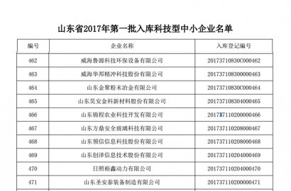 2018年1月24日,山東省科技廳發布公告,公布山東省2017年度第一批入庫科技型中小企業名單,我公司成功入選。